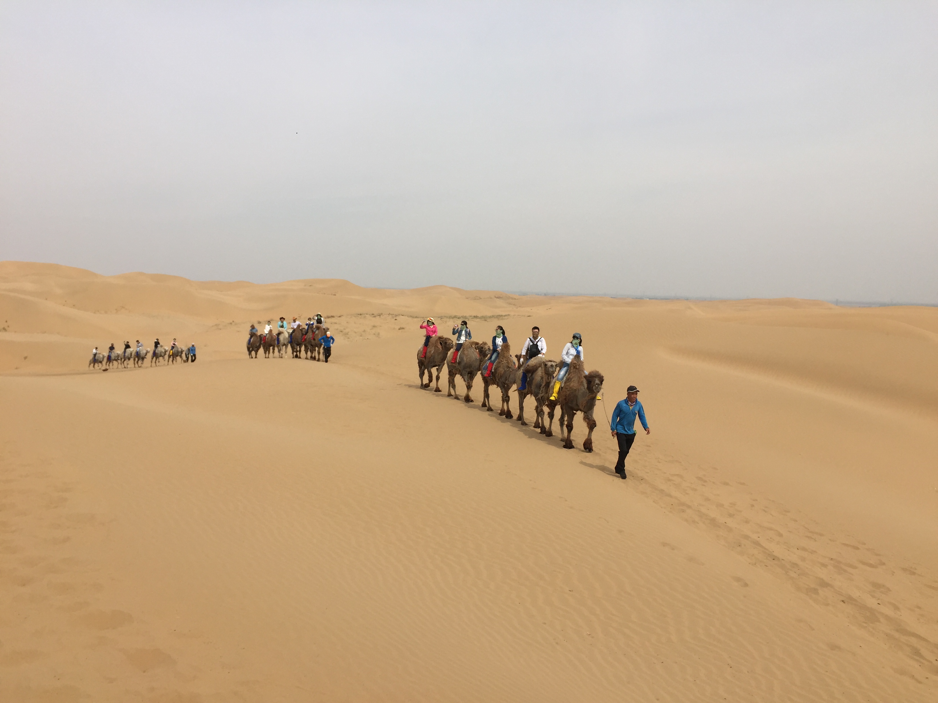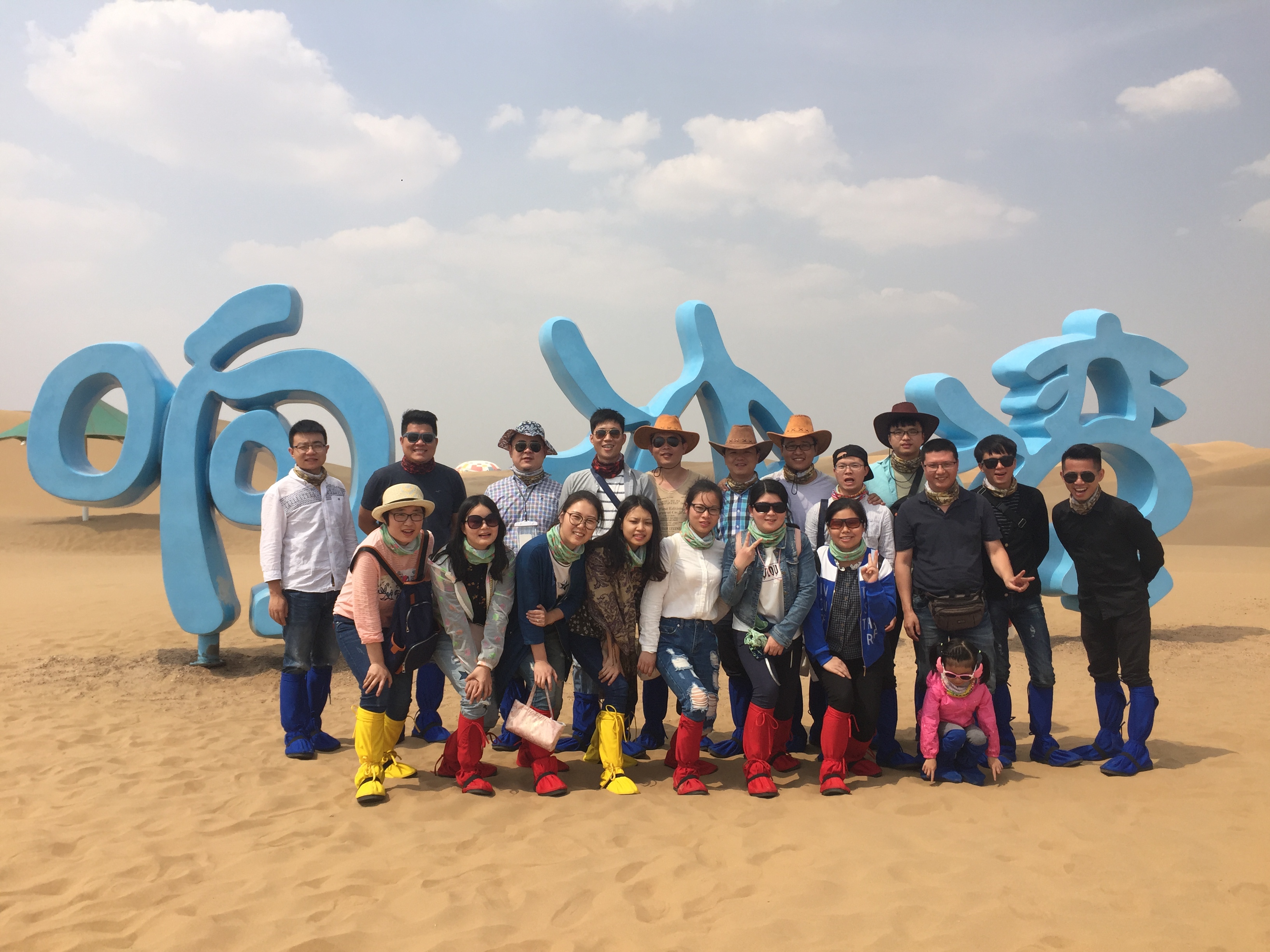 第四天,拋開對草原的留戀以及大汗的敬仰之情,我們繼續(xù)前往響沙灣——也是此行最為期待的沙漠之旅;作為西北方特有的地貌,此次也是第一次見到,一眼望去黃澄澄的一片;它不同于大海的波濤洶涌和循環(huán)不息,而是一幅寂靜荒涼而悲壯的畫面,震撼著你的心靈。在響沙灣邊緣,我們坐著纜車跨過一條基本干涸了的河床,正式進(jìn)入沙漠,穿好沙襪,之后乘坐沙漠之舟進(jìn)入娛樂天堂——仙沙島。在那里,我們可以進(jìn)行騎駱駝,速滑索道,騎沙漠摩托和滑沙等好玩而又刺激的活動,除此之外還能欣賞大型的雜技表演,飽足眼福。娛樂一圈,大家也都漸漸疲乏,正好返回呼市共享晚餐。
